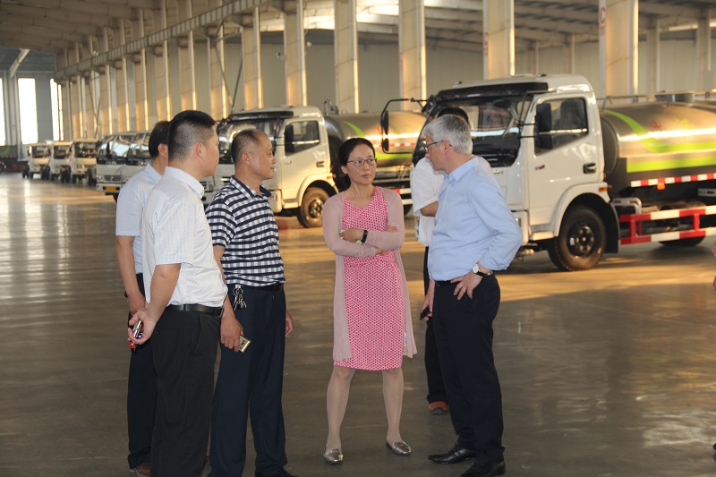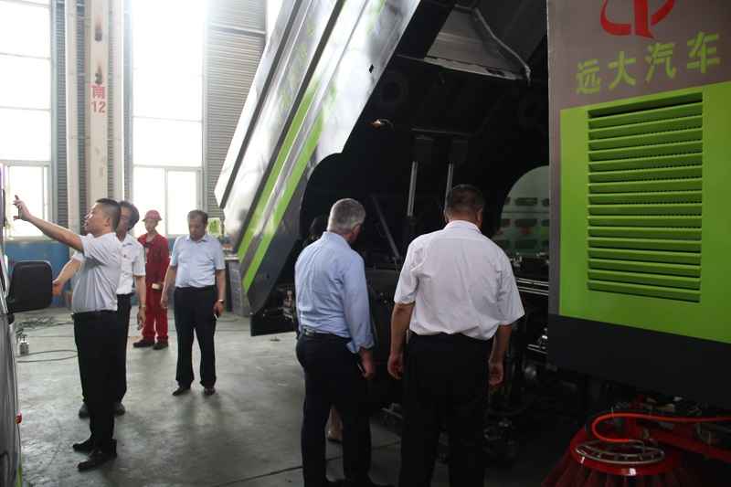 董事長王洪剛帶領(lǐng)瑞士友人一行人首先在會議室中進(jìn)行了深入的溝通以及了解,隨后觀摩了遠(yuǎn)大集團(tuán)的生產(chǎn)車間,對車輛設(shè)備的生產(chǎn)流程及車輛產(chǎn)品效果做了詳細(xì)了解,對我司的產(chǎn)品進(jìn)行了解和咨詢,參觀了洗掃車、灑水車、垃圾車、壓縮車、垃圾箱等環(huán)衛(wèi)設(shè)備。