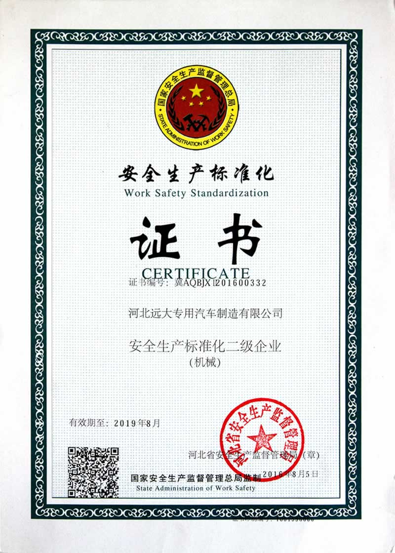 安全生產(chǎn)標(biāo)準(zhǔn)化證書