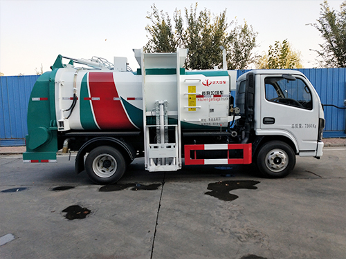 本車采用側(cè)面桶裝,可配裝載不同規(guī)格(120L,240L)的標(biāo)準(zhǔn)垃圾桶,具有廣泛的適用性;推擠壓縮,可實(shí)現(xiàn)餐廚垃圾油水的初步分離和垃圾減容以及定位密封排放卸料,裝載量可達(dá)3500kg;整車配備高壓清洗機(jī),可以在使用完之后對(duì)整車進(jìn)行清洗;該車操控采用機(jī)電液一體化技術(shù),實(shí)現(xiàn)裝載的智能化,整個(gè)裝載過程僅一個(gè)人操縱開關(guān)便可輕松完成,大大減小操作者的勞動(dòng)強(qiáng)度,更好的改善工作環(huán)境。從環(huán)境保護(hù)和經(jīng)濟(jì)發(fā)展來看,餐廚垃圾的危害日益嚴(yán)重,對(duì)餐廚垃圾污染實(shí)施有效控制和治理已刻不容緩。由于餐廚垃圾含水率較高,流動(dòng)性較大,非常容易泄漏,造成二次污染,孳生大量的蚊蠅,影響環(huán)境衛(wèi)生;并且餐廚垃圾未經(jīng)任何處理,有的在運(yùn)輸途中就已變質(zhì),一般未封閉的垃圾車嚴(yán)重影響城市日常交通和污染環(huán)境,所以我們建議選用自裝卸式餐廚垃圾運(yùn)輸車。