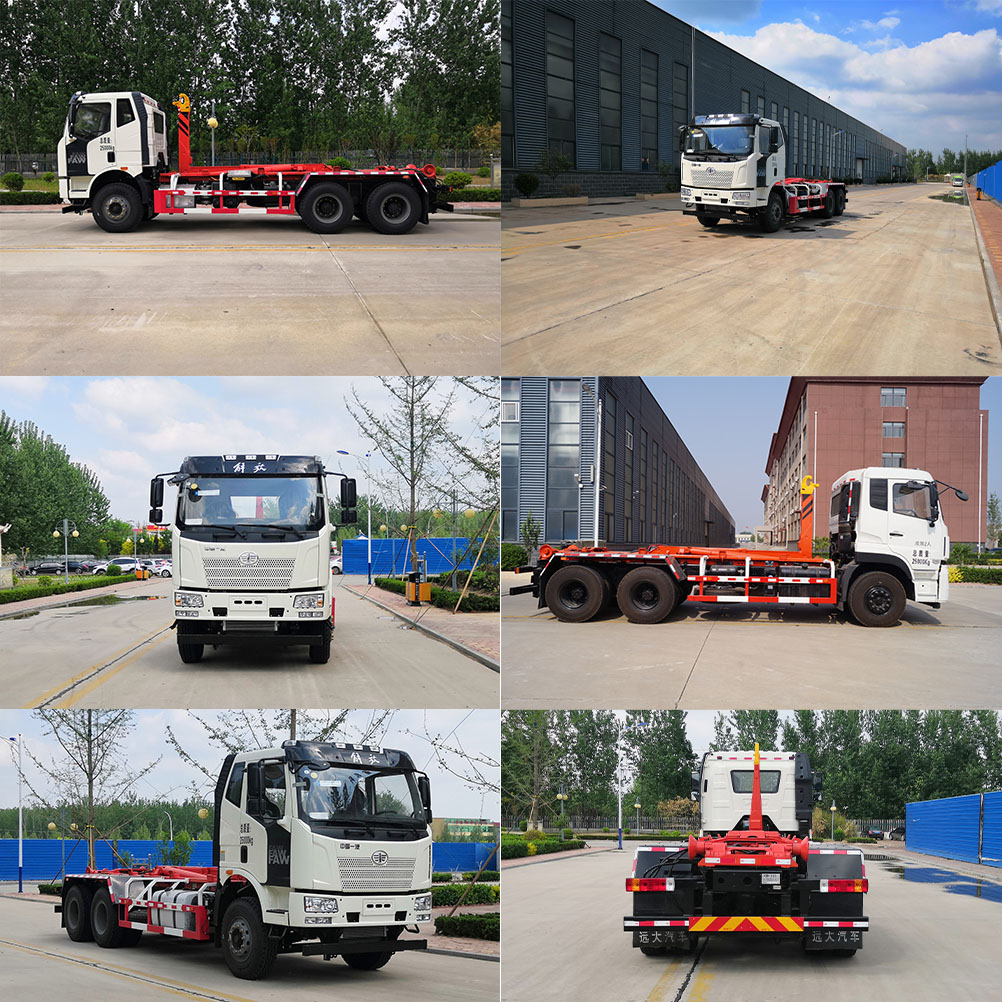 隨底盤選裝前圍和燈具,選裝寬體保險(xiǎn)杠,腳踏板.該車僅采用軸距4350+1350(mm)的底盤.選裝LBH20A拉臂式自裝卸裝置時(shí),車輛高度3070mm;選裝引起的質(zhì)量變化在3%以內(nèi).側(cè)面防護(hù)裝置的材料為Q235A,連接方式為螺栓連接;后部防護(hù)裝置的材料為Q235A,連接方式為焊接,后部防護(hù)裝置的斷面尺寸(寬×高)mm:60×150,離地高485mm;發(fā)動(dòng)機(jī)與油耗申報(bào)值(L/100km)對(duì)應(yīng)關(guān)系CA6DK1-26E6/32.5,CA6DK1-28E6/32.5,CA6DK1-32E6/32.5.ABS系統(tǒng)生產(chǎn)廠家:長春瑞立科密汽車電子有限公司,型號(hào):CM4XL.隨底盤安裝限速裝置和衛(wèi)星定位功能的行駛記錄儀,限速89km/h.該車裝備拉臂式自裝卸裝置,用于垃圾廂的收放,運(yùn)輸和垃圾傾卸.