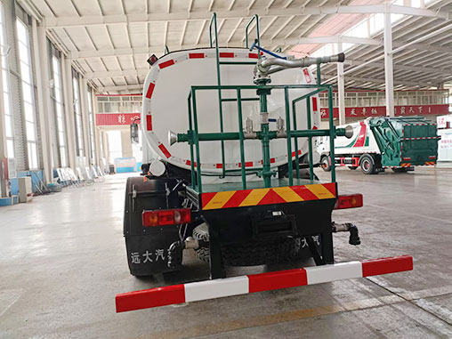 車(chē)輛功能齊全,擁有前沖、中沖、后灑、側(cè)沖、平臺(tái)高炮等功能,還配備放水口、自吸口、自吸管等;罐體后部裝有箭頭指示燈,給予行人、車(chē)輛警示,提高車(chē)輛作業(yè)安全性。